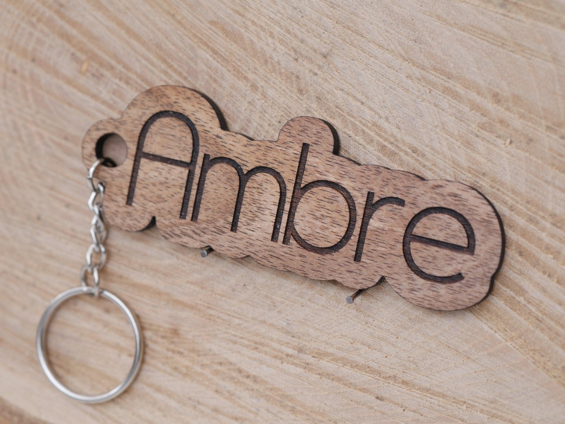 Porte clé en bois massif personnalisé.